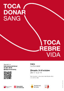 Actualitat, Agenda Donació de sang 14/10/2025 | Centre Recreatiu Llersenc Benvolguts/des, El proper dimarts dia 14 vine a donar sang a Llers! T’esperem al Centre Recreatiu Llersenc, a la Plaça del Ramal, de les 17:00 fins les 21:00 hores. Et necessitem! Reserva a https://rebrand.ly/iv0us1z < Entrada Anterior
